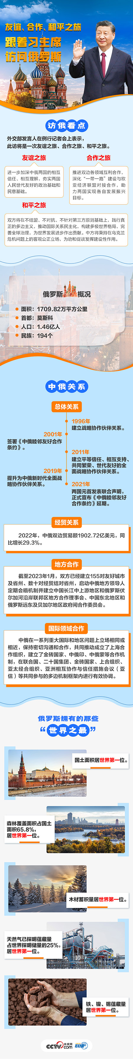 近年来,习近平主席同普京总统保持着密切往来。在两国元首战略引领下,中俄新时代全面战略协作伙伴关系持续健康稳定发展,两国成功走出了一条大国战略互信、邻里友好合作的相处之道,树立了国际关系的新范式。习主席此访有何看点?俄罗斯这个国家您了解多少?央视网《联播+》带您先睹为快。