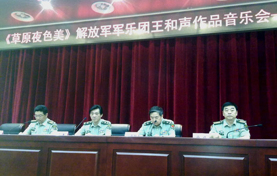 为了庆祝建党90周年,由解放军总政宣传部艺术局、中国人民解放军军乐团、中国音乐家协会管乐学会主办的“草原夜色美—解放军军乐团王和声作品音乐会”将于6月11日和12日分别在解放军军乐厅和国家大剧院举行。解放军总政宣传部副部长、中国文联副主席黎国如,总政歌舞团艺术指导、中国音协副主席印青,中国人民解放军军乐团政委马力、副团长邹锐等出席了6月3日举行的“草原夜色美—解放军军乐团王和声作品音乐会”新闻发布会。