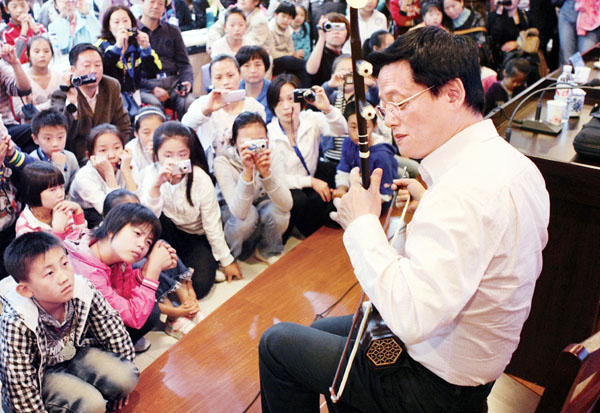 演奏家邓建栋为孩子们授课。张大勇/摄