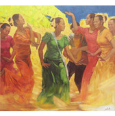 谢麟的油画创作首先在解决油画的民族化问题上取得了突破性的成绩。油画的中国化或者说是民族化,其实首先是一个在地化的问题。就是说,民族化不是一个大无边际的问题,它首先是一个身体图式、身体地理,是画家的在地化和民族化。