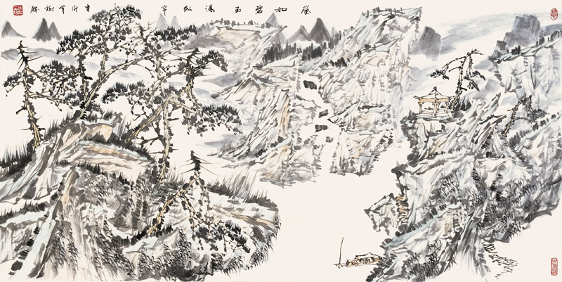 《崖如碧玉瀑似帘》 68CM×136CM 国画 2011
