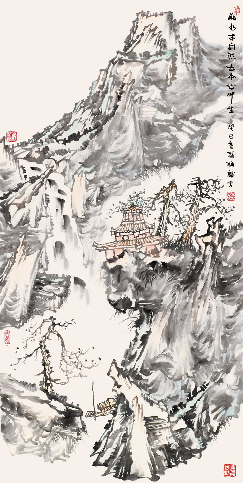 《山水本自然 古今心中生》 138CM×68CM 国画 2013年