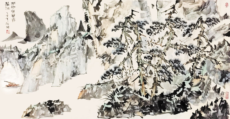 《润物无声春满江》 68CM×138CM 国画 2015年