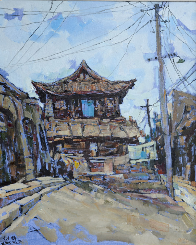 《米脂老街十字路口》 80CM×100CM 油画 2011年