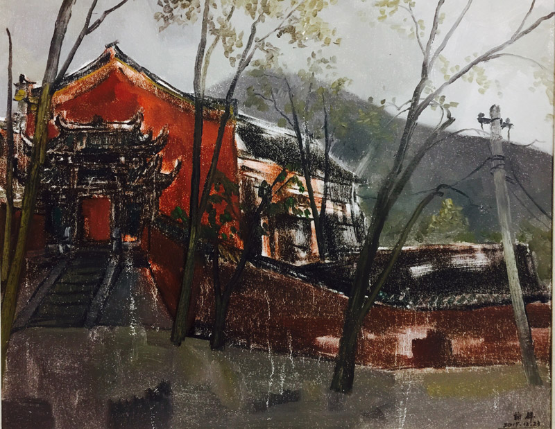 《暮雨湘山寺》 80CM×100CM 油画 2015年