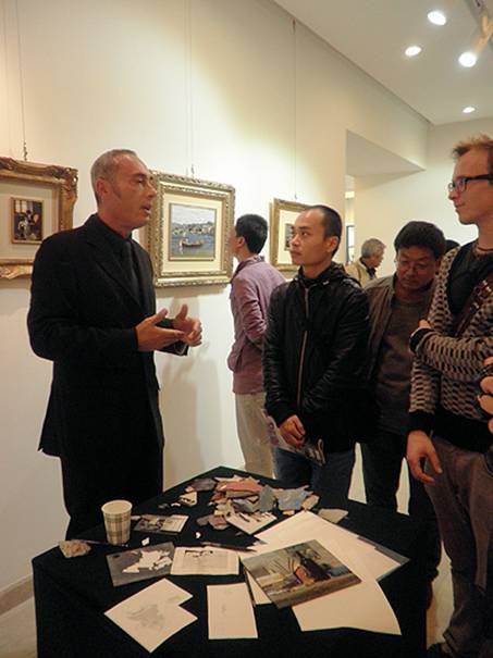 意大利艺术家为来宾讲解镶嵌艺术品的创作过程