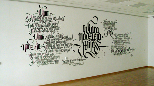 波兰街头艺术家Adam Romuald Klodecki正在发起一项名为“calligraffiti”(书法涂鸦)的运动,顾名思义,这种艺术表达形式就是讲自由的涂鸦与书写结合在一起,不同于常见的绘画涂鸦,同时涂抹的对象也更多,不仅限于墙壁,椅子等家具也在其中。