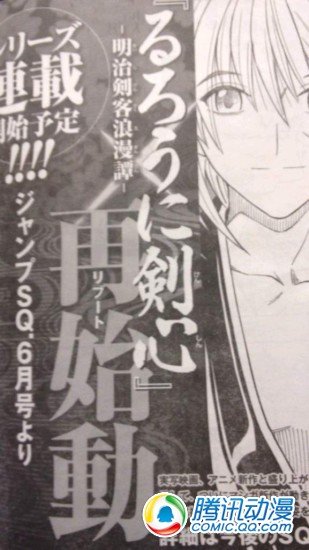 再始动的漫画《浪客剑心》新系列预计将在集英社《JUMP SQ》2012年6月号上展开连载。话说,和月伸宏老师目前正在该杂志上连载一部名叫《猎尸者》(原文:《エンバーミング》)的漫画,大概也会在5月号宣布完结吧。至于最新连载的内容,究竟是前传还是延续本篇的故事,之后会在《JUMP SQ》上公开,届时我们也会在第一时间为大家报道。