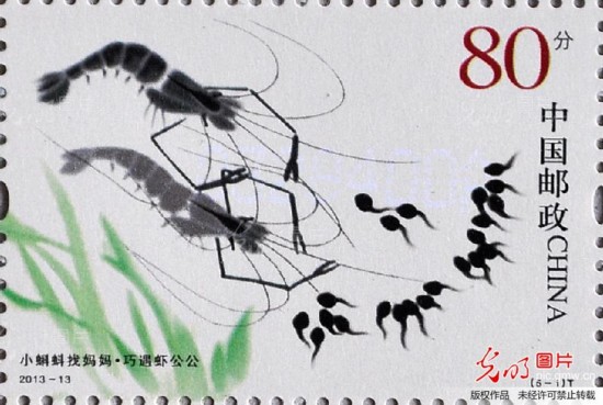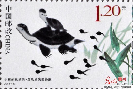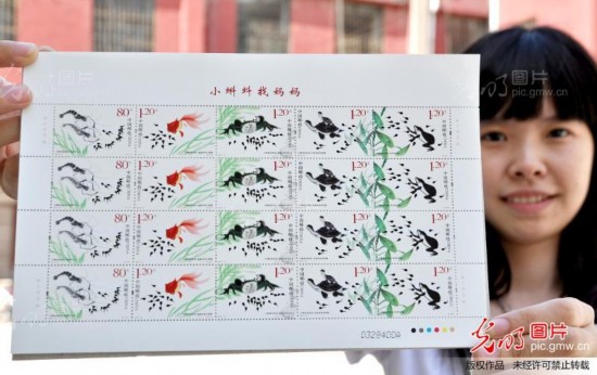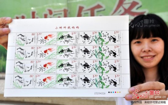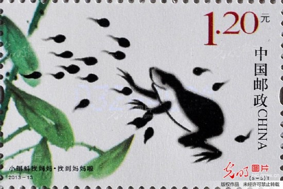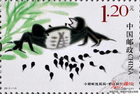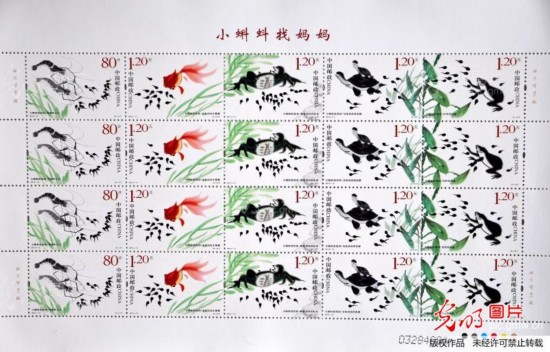 2013年5月31日,在河北省邯郸市邮政局拍摄的《小蝌蚪找妈妈》特种邮票。