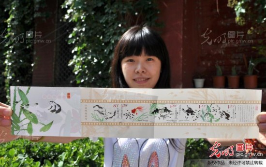 2013年5月31日,河北省邯郸市邮政局工作人员在展示《小蝌蚪找妈妈》特种邮票。