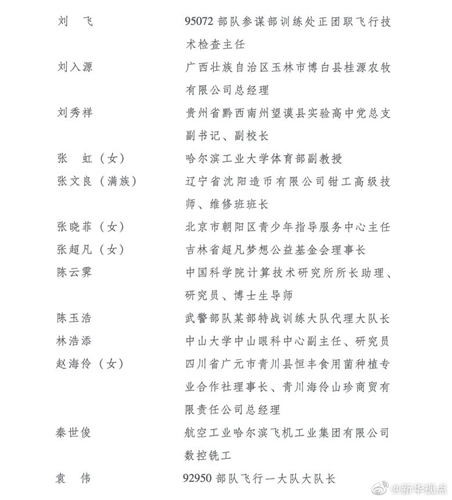 荣获第24届“中国青年五四奖章”的分别是:江苏省南京市鼓楼区方家营消防救援站站长助理、三级消防长丁良浩,安徽省滁州市定远县吴圩镇西孔村党总支第一书记王萌萌(女),厦门大学航空航天学院常务副院长、特聘教授、博士生导师尤延铖,湖北省黄冈市罗田县希望小学校长方荣(女),浙江每日互动网络科技股份有限公司董事长兼总经理、党委书记方毅,浙江省杭州市拱墅区职业高级中学美发专业教师石丹(女),国家超级计算无锡中心副主任付昊桓,中国石油大港油田公司第二采油厂作业二区注采二组副组长冯萌萌(女),宁夏回族自治区石嘴山市中医医院副主任医师朱斌,中国国家女子排球队队员、队长朱婷(女),95072部队参谋部训练处正团职飞行技术检查主任刘飞,广西壮族自治区玉林市博白县桂源农牧有限公司总经理刘入源,贵州省黔西南州望谟县实验高中党总支副书记、副校长刘秀祥,哈尔滨工业大学体育部副教授张虹(女),辽宁省沈阳造币有限公司钳工高级技师、维修班班长张文良(满族),北京市朝阳区青少年指导服务中心主任张晓菲(女),吉林省超凡梦想公益基金会理事长张超凡(女),中国科学院计算技术研究所所长助理、研究员、博士生导师陈云霁,武警部队某部特战训练大队代理大队长陈玉浩,中山大学中山眼科中心副主任、研究员林浩添,四川省广元市青川县恒丰食用菌种植专业合作社理事长、青川海伶山珍商贸有限责任公司总经理赵海伶(女),航空工业哈尔滨飞机工业集团有限公司数控铣工秦世俊,92950部队飞行一大队大队长袁伟,中铁二局磨万铁路第Ⅵ标项目经理部第一分部二工区工区长、高级工程师徐州,博奥赛斯(天津)生物科技有限公司董事长栾大伟,港珠澳大桥管理局副总工程师、教授级高级工程师景强,湖北省咸宁市崇阳县白霓镇大市村党支部书记程桔(女),山东省七兵堂集团股份有限公司董事长、党支部书记谢清森,江苏苏宁物流有限公司快递员潘虎,南京大学医学院附属鼓楼医院肿瘤科行政副主任、南京大学临床肿瘤学研究所副所长、博士生导师魏嘉(女),中国医科大学附属第一医院重症医学科党支部书记、副主任,教授、主任医师丁仁彧,内蒙古自治区第四医院护士长、副主任护师王颖丽(女、蒙古族),四川省医学科学院·四川省人民医院EICU副主任医师邓磊,浙江省杭州市中医院重症监护室副护士长朱佳清(女),江苏康为世纪生物科技有限公司总经理、党支部书记庄志华(女),首都医科大学附属北京友谊医院重症医学科主任助理、副主任医师刘壮,中建深圳装饰有限公司项目经理刘铖,重庆医科大学附属第一医院呼吸与危重症医学科副主任医师、副教授刘煜亮,青海省人民医院重症医学科护士长、主管护师孙晓林(女),湖北省武汉市汉阳区龙阳街芳草社区党支部书记、居委会主任杜云(女),福建省疾病预防控制中心免疫规划所主管技师李东,中国铁路南昌局集团有限公司南昌疾病预防控制所消杀科科长杨波,河北中医学院第一附属医院(河北省中医院)护师肖思孟(女、满族),北京协和医学院教授、中国医学科学院肿瘤医院研究员吴晨(女),中国宝武武汉武钢绿色城市技术发展有限公司海绵公司工程技术部部长何航,湖北顺丰速运有限公司分部经理汪勇,天津医科大学总医院呼吸与危重症医学科监护室护士长沈悦好(女),西安交通大学第二附属医院急诊科副主任、副主任医师张正良,青岛大学附属医院麻醉科主治医师张孝田,湖南省湘潭市第一人民医院重症医学科主任、副主任医师易钊泉,湖南省怀化市志愿者协会副秘书长罗小小,华中科技大学同济医学院附属同济医院心内科副教授、副主任医师周宁,甘肃蓝天救援队理事长、队长於若飞,武汉大学中南医院感染科护士长、主管护师胡慧(女),辽宁省沈阳橡胶研究设计院有限公司研发中心基础理论与材料研究主任工程师姚秀超,山西医科大学第一医院神经内科护士长、主管护师唐珊(女),湖北省武汉市公安局江汉区分局警务指挥处民警涂可蔼(土家族),广州医科大学附属第一医院重症医学科副主任医师桑岭,湖北省武汉市第三医院重症医学科副主任医师董芳(女),东南大学附属中大医院重症医学科主任医师潘纯。