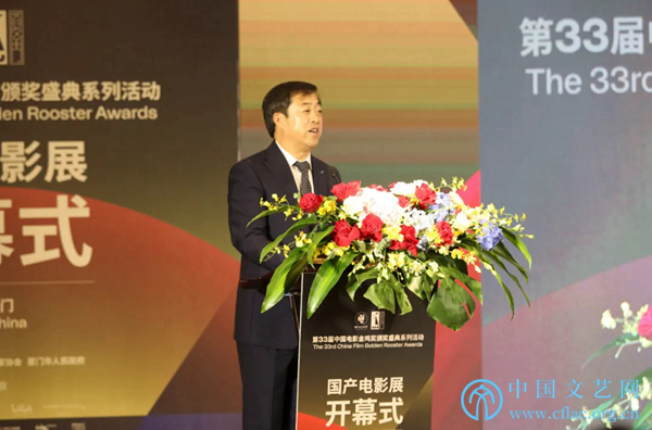 11月25日,第33届中国电影金鸡奖颁奖盛典系列活动国产电影展开幕式在福建厦门举行。图为中国影协分党组副书记、秘书长闫少非在开幕式上致辞。