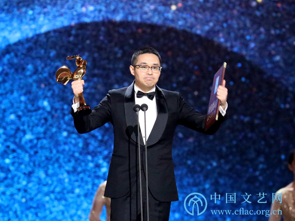 11月23日,第32届中国电影金鸡奖颁奖典礼暨第28届中国金鸡百花电影节闭幕式在福建厦门举行。图为最佳导演处女作文牧野(《我不是药神》)发表获奖感言。