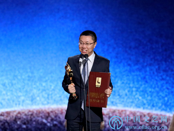 11月23日,第32届中国电影金鸡奖颁奖典礼暨第28届中国金鸡百花电影节闭幕式在福建厦门举行。图为最佳摄影曹郁(《妖猫传》)发表获奖感言。