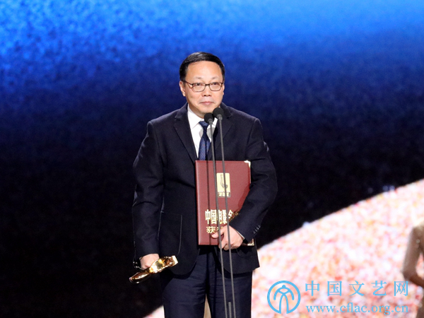 11月23日,第32届中国电影金鸡奖颁奖典礼暨第28届中国金鸡百花电影节闭幕式在福建厦门举行。图为最佳科教片《绿色长城》影片代表发表获奖感言。