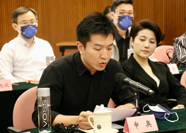 5月23日,纪念中国电影金鸡奖创立40周年暨中国金鸡百花电影节举办30届研讨活动在京举行。图为青年导演代表申奥发言。