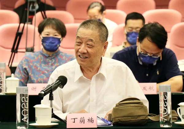 5月23日,纪念中国电影金鸡奖创立40周年暨中国金鸡百花电影节举办30届研讨活动在京举行。图为中国影协顾问、著名电影艺术家丁荫楠发言。