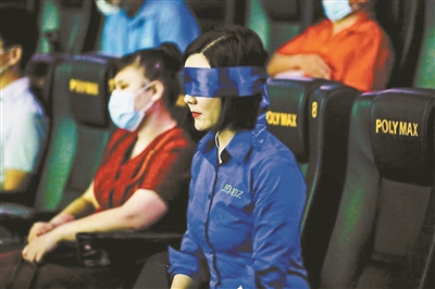 视力正常的影迷用丝巾蒙住双眼,和视障观众一同感受
