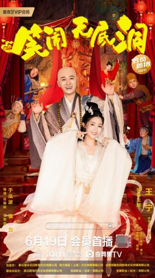 由象山波云见日影视文化有限公司、星力海蓝(上海)文化传媒有限公司、北京创磁空间影视文化传媒有限公司出品的奇幻喜剧电影《笑闹无底洞》定档6月19日爱奇艺独家播出。该片由于泓波担任导演兼总编剧,张力担任总策划,周莹冰、魏云、田鸿硕担任制片人,演员王宁饰演唐僧,安唯绫饰演女主角小白,宋熹饰演孙悟空,桑平饰演八戒,李彧饰演沙僧,雪雯饰演小红,更有抖音百万级红人阿牛哥特别出演。