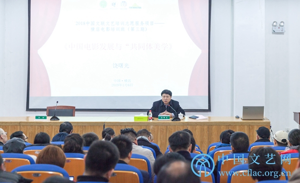 1月6日至8日,“2018中国文联文艺培训志愿服务项目——横店电影培训班”(第三期)在浙江横店举行。图为中国电影评论学会会长饶曙光讲座现场。