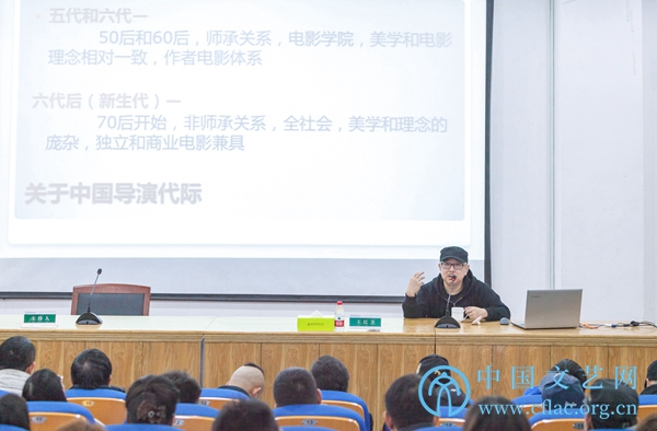 1月6日至8日,“2018中国文联文艺培训志愿服务项目——横店电影培训班”(第三期)在浙江横店举行。图为导演、编剧、电影学者车径行讲座现场讲座现场。