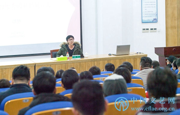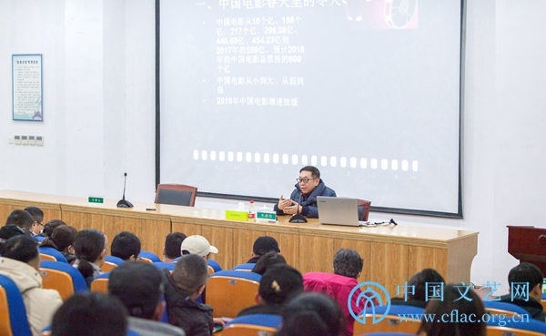 1月6日至8日,“2018中国文联文艺培训志愿服务项目——横店电影培训班”(第三期)在浙江横店举行。图为青年导演、编剧、制片人、音乐人、中国传媒大学教师谭华讲座现场。