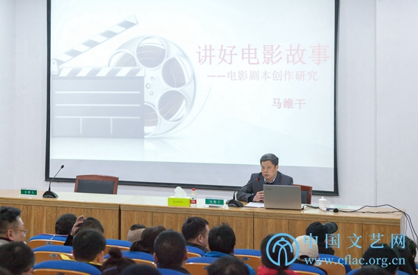 1月6日至8日,“2018中国文联文艺培训志愿服务项目——横店电影培训班”(第三期)在浙江横店举行。图为编剧马维干讲座现场。