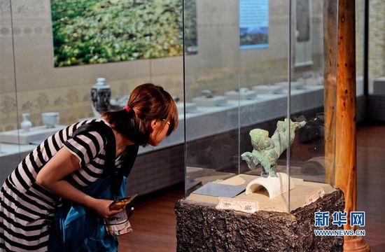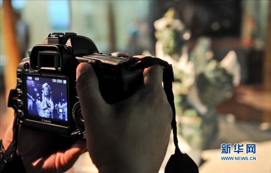 7月16日,一位参观者在拍摄“绿琉璃伽陵频迦”。