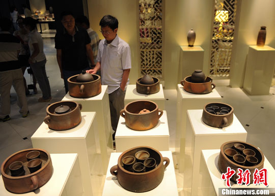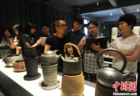 图为一批荥经黑砂器皿精品首次亮相。中新社发 刘忠俊 摄