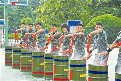 观众的欢呼不足为奇,因为这个曾获总部战士文艺创作一等奖的特色文化节目已历经多次实践检验。记者在排练现场看到了久负盛名的油桶打击乐,只见四排见方的官兵手舞木槌,根据音乐节奏的变化,时而敲击,时而伸展,木槌上的红飘带随着身体动作的转换而上下翻飞,军人的刚劲与豪迈纤毫毕现。