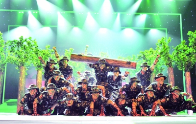 舞蹈是唯美的艺术,艺术家精湛的技艺,配以华丽的服装和炫目的灯光,总能把作品演绎得美轮美奂。说实话,基层官兵自编自演的舞蹈少了些许技巧,也鲜有华服和电脑灯的辅助,但它形成了自己独特的风格,战士们把军事训练和本职工作和以音乐节拍、赋予舞蹈韵律,用刚劲整齐的肢体语言飞扬青春、诠释自信,更传递着当兵就为打胜仗的壮志雄心。《勇往直前》是近年来业余文艺舞台上的舞蹈佳作,一群迷彩战士肩扛圆木在训练场上奔跑,一名接近体能极限的士兵在战友的激励下跪地前行,一片战地黄花在优美的音乐声中美丽绽放,训练的艰苦、钢铁的意志、醉人的花香在舞台上瞬间交融,凝成一股无形的力量,触摸着我们的心底,沸腾着我们的血液。驾战鹰翱翔蓝天的飞行员让人向往,而默默养护战机的机务兵又怎能相忘,舞蹈《机务兵》的演员本身就是机务兵,道具只有平时登机的简易铁梯,元素只是擦拭飞机的简单动作,呈现的却是战士对蓝天的向往和制胜的锋芒。潜入大洋深处,巡航祖国海疆,表演《水下军魂》的战士们用身体语言展示了潜艇兵在水下的战斗姿态,虎虎生威的气势足以让来犯之敌心惊胆寒。曾远赴非洲执行任务的医务人员自编自演舞蹈《维和天使》,表达的是中国军人时刻准备打仗而又热爱和平、崇尚和平、积极维护世界和平的高尚情怀。鼓舞《催征》的战士们擂响战鼓,杀声震天,让人血脉贲张,那一刻,所有人的心与鼓声跳动在一起,中国军人一往无前的战斗激情随着震天杀声直冲云霄。