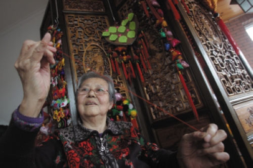 对韩月娥来说,如今她的生命已经离不开传统布艺了。“一时不让我做,就觉得站也不是坐也不是。”老人家呵呵笑着,她站起身将刚做好的彩球挂在窗前,正午的阳光透过玻璃,勾勒出她弯曲的背影。