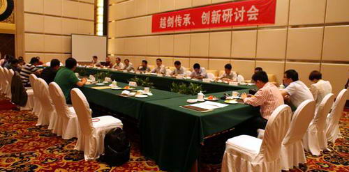 研讨会上,六把名剑一一亮相,专家、学者在惊叹的同时也积极探讨如何继续传承和发展越剑铸造技艺。中央电视台《国宝档案》栏目总监翁艺表示,越王剑具有深厚的历史文化价值,其铸造技艺中包含了绍兴丰富的非物质文化遗产,可以以此作为契机,将越王剑打造成中国本土的奢侈品牌。浙江省非遗保护专家委员会委员都一兵也呼吁,要进一步做好绍兴青铜剑铸造技艺的挖掘研究工作,在传统的基础上创新,用更多的非遗文化元素装点越王剑,使越王剑更具文化内涵,更具时代特色,更合当代人的审美趣味。会上,专家们一致表示,越王剑是绍兴工艺美术的金名片,只有努力加大宣传力度,着力开发新产品,加强生产性保护,才能使越剑重焕生机,实现活态发展。
