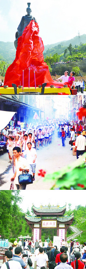 周燕屏(右)为屈原铜像揭幕(李刚/摄)