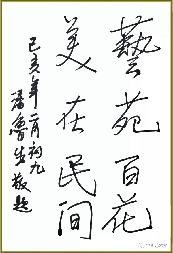 潘鲁生为《中国艺术报》题词:艺苑百花 美在民间