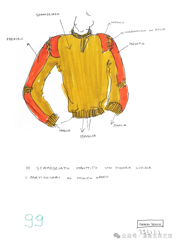 阿玛尼非凡的创造力与时尚表现力始终感染着大家,尤其是回想起山东工艺美术学院曾获赠过一批珍贵的阿玛尼设计手稿,敬意与怀念之情更甚。2013年10月,山东工艺美术学院建校40年之际,获得温琴佐·桑弗先生捐赠的100件乔治·阿玛尼服装设计手稿,以及56幅乔治·阿玛尼服装摄影大片。这批服装设计手稿,创作于1969年至1989年,正值阿玛尼服装品牌在全球时装界地位的上升期,设计方案自由洒脱,艺术个性鲜明。56幅1998年乔治·阿玛尼春季服装摄影大片显示了阿玛尼品牌成熟时期的作品面貌。这些藏品对研究阿玛尼作品及品牌发展具有重要的史料价值。