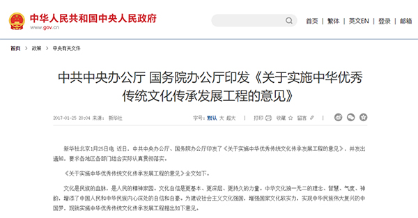 在此基础上,2017年1月,中共中央办公厅、国务院办公厅印发《关于实施中华优秀传统文化传承发展工程的意见》,第一次以中央文件形式专题阐述中华优秀传统文化传承发展工作↓↓↓