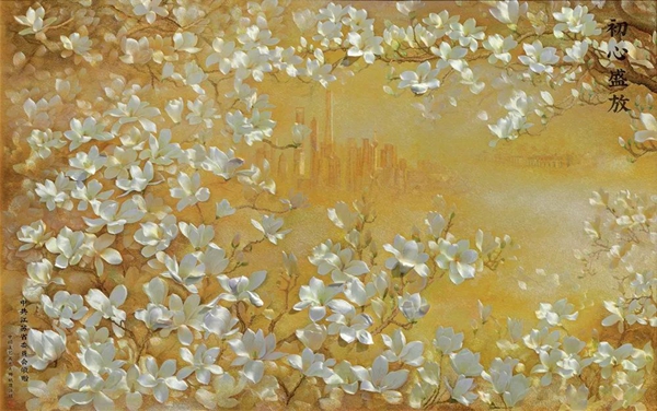“《初心盛放》的设计是我们苏绣设计生涯上最大的挑战,我们率领团队先后尝试了很多个不同的版本,从最初的红船和伟人群像,到山水,再到外滩建筑,但始终还是想寻找一个更加新颖的角度,以更好展现苏绣的特点。”李文博回忆道。最终,在与姚建萍以及中共一大会址纪念馆陈展项目总设计师胡晓云讨论后,他们将玉兰花确定为作品的主要元素,同时也在作品中融入中共一大会址老石库门和上海陆家嘴等当代建筑新貌,共同展示党的初心和奋斗成就。