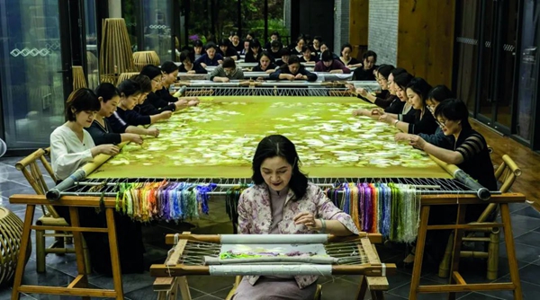 图片姚卓(左一)参与苏绣作品《初心盛放》创作现场