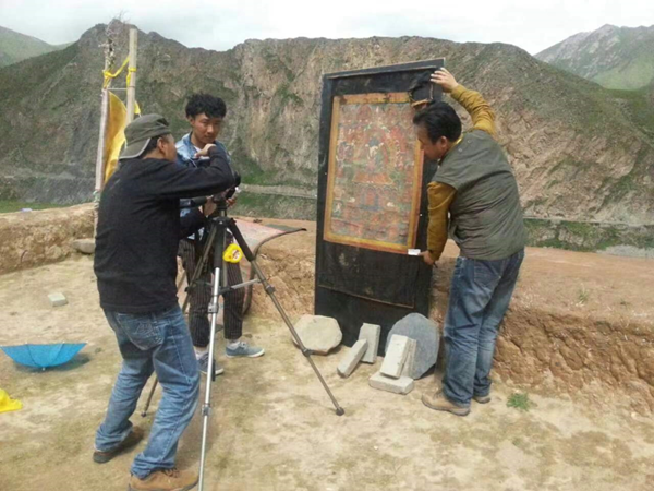▲索南多杰在青海省玉树藏族自治州藏娘地区采集唐卡文化档案