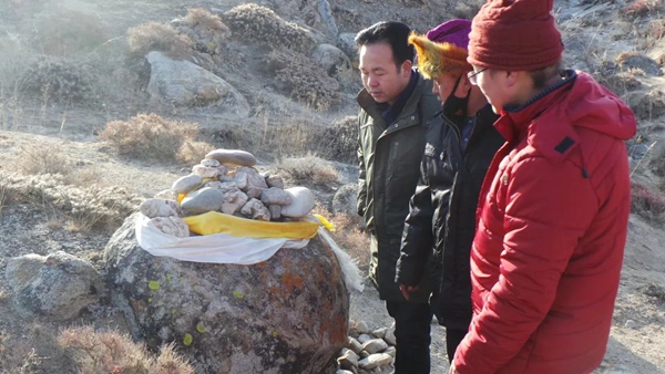 ▲索南多杰在青海省海南藏族自治州共和县考察格萨尔风物传说