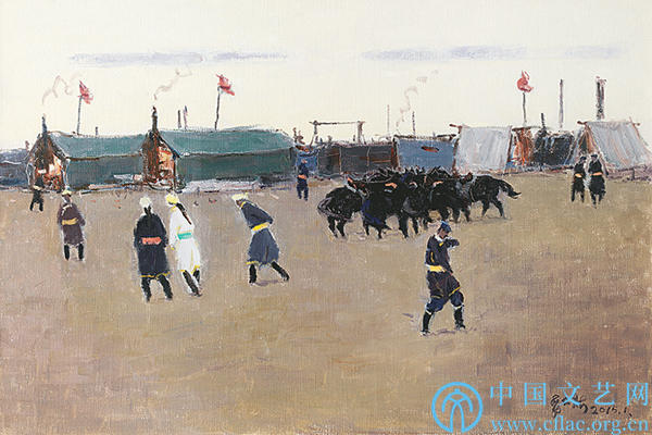 当然,还有一个方面需要我们进行思考,即要有相当数量的精英艺术家和经典作品突显草原题材美术的精神价值和导向。只有这样,才能使从事民族题材美术创作的艺术家树立自己的“文化自觉”意识,并使其不断得到强化,民族题材美术创作才能真正发挥其在社会文化体系中独有的作用。