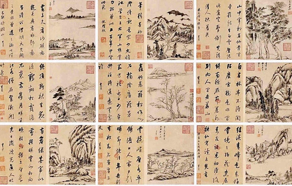 今年中国嘉德春拍大观夜场中,董其昌《书画合璧山水小景》以7475万元人民币成交,该作流传有绪,是董其昌凿凿可考的名作。图为该作品局部。