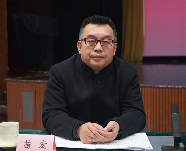 苗宏在工作会上宣读了《商务部关于同意举办第十四届全国美术作品展览的复函》。