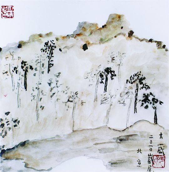 每当我动笔作画,总充满期待,但一般是心中无数。我没有预设构图,只是动笔之后一笔一笔地勾画线条时,情绪才被激起,开始全神贯注,忘我地点擦皴染,刹时间仿佛一件“杰作”即将问世。画完后细细端详,冷静审视,才感到惭愧,才感到水墨之难,画张好画决非易事。也许正是这一次一次的喜悦与苦恼和水墨本身包含的“神秘”,使迷醉于水墨的我,从中领悟到不少生活与艺术的哲理。