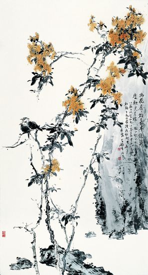看了陈鹏的一百多幅画,二十几年时间的跨度,坚持不懈的艺术追求轨迹,几近括出了一个清晰明朗的现在和发展的未来。由此我得出一个结论:拼命复归传统与完全现代派的西化形式是异化道路的两个端点,纯粹东方文化观念依然是深入骨髓的主导,它将以形而上的本体论哲学意义被世界肯定。以艺术形式弘扬这种文化观念,并在审美实践中扎实地深拓现代意义的东方文化是一个未来大画家的基础责任,陈鹏对此即有清醒认知。在万花筒式的现实世界里他没有迷失,没有故作深沉的叹息,他是大写意花鸟实践者的火炬。