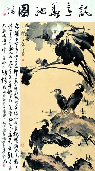 我以为陈鹏在大写意花鸟画博大空明充满禅境的审美中,找到了现代意义的韵和趣,并找到了自己存在的定位和成为大家的起点。以此,我坚信前人并未把路走完,中国当代大写意画坛依然会群峰耸立,层峦叠障,险峰处无限风光……