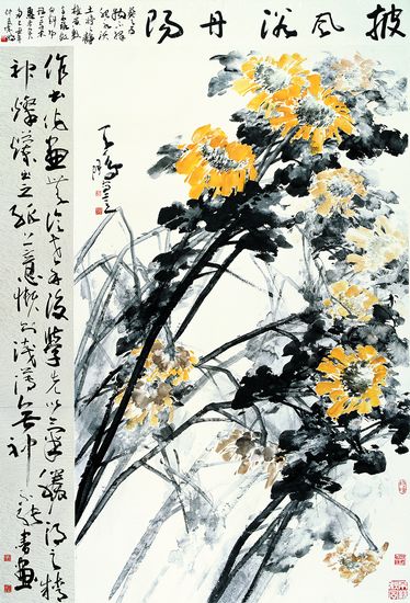 我在美院上学期间,有幅获奖的作品《月夜》在美术馆展出,李可染先生看我的画,给予了肯定,讲得很具体。尤其谈到我对生活的观察认识时说:“画家的一生必须要读好两本大书,一是传统;二是生活”。“中国画在发展,这种发展是建立在继承传统和对生活一往情深的基础上的”(程十发语)。齐白石恰恰是这种“一往情深”的典型代表,山花野草、游鱼昆虫、农具篱笆、仓鼠油灯无一不是画材,又无一不见精妙,而画家所表现的,都是日常生活中所见所用,非常熟悉和喜欢的,倘若失去起码的兴趣,创作的激情何来?又倘若画家缺乏这种“一往情深”的感动、博爱、厚道及血性,缺乏丰富的阅历,醇厚的学养,哪里还会有“化腐朽为神奇”“妙笔生花”的手段?潘天寿说:“一块拳石、几株枯草,乃吾辈无上粉本”。独特的视野,富有新意的观察角度,倾注心的关照,于自然山川中融情融思,运用个性思维,创造独特艺术形象和绘画风格。无须讳言,任何天才画家的真正乐趣和感动也在于此。因此,画家是常人又不同于常人。凡有思想的创作,必然包涵其对于生活的感知,“得之于象”,在这里,“象”是原形,是自然山川的造化之“象”,而非画家凭空臆造之“象”,是“有笔有思”之象。在此,我说一些个人创作经验。早在1992年,我在一朋友的家里看意大利影片《向日葵》。情节是二战期间女主人公新婚不久,丈夫参军赴前线,杳无音讯,此女子靠为他人作些浆洗工作贴补生活。在其生活维艰又极度思亲情境里,一日外出,途中经过一望无际的向日葵地时,女子感动并疯狂,在无边的黄色与绿色的交织掩映中狂奔、旋转、宣泄、扑跌,泪流满面。我被极多、极绚烂的葵花震惊,忽突发心智,何不将其花画出来?自古葵花未曾见有表现者,近代偶尔一二之人不经意画之,并未能彰显其彩,于是,历经数年,收集、写生、观察、种植,我对向日葵可谓熟知极矣。知其结构、特性,研其画理、笔墨、形态,无数次无数张废画的失败,终于总结出自己的一套绘画技巧,又从形式上、内容上不断挖掘,使之既具结构的丰富变化,又具传统笔墨上的形式美感,最终作品《风雨不能摧》入选第九届全国美展,另一幅《熠耀阳华》被京丰美术馆收藏,均获专家好评。另外,近年来,我数次赴云南写生,对热带雨林植物大感兴趣,丰富的热带植物相互交织、掩映、纠缠在一起,看似杂乱无章,其实丰富多彩,这又大大点燃起我的创作热情,我尝试用传统大写意的笔墨结构语言,来表达如此纷乱、复杂且又丰富的稀有植物,如露霓树、鹤望兰、马达加斯加旅人蕉、印度无忧树等北方地区不曾有的题材,有序组合、安排,将大的结构形式、框架与热带特有的藤蔓植物搭建在一起,其中穿插龟背竹、寄生蕨类以及各种寄生兰等,再衬以石头、芭蕉,写、钩、点、积、染、泼、洗各种技法交替相参,我称之为“混合技法”,表现出我印象中的那种“混沌”之象。令我不禁想起老子的“玄之又玄,众妙之门”精辟论断。此时,似乎绘画可以无所不能,无所不包,冥然中有种“吞吐宇宙”、“神游八荒”的奇想与胸怀,“落笔惊风雷”、“排纸生云烟”的痛快淋漓。《雨林清韵》《醒世不厌人》等作品,就是新探索的结果,二幅作品分别获得第三届、第四届全国画院系统优秀作品奖。遐想之“思”,令人恍惚凌虚于天际漫步,有时,往往虚幻的想象,和那种模糊的不确定性,极大地激起我遐想的兴奋点,亦仿佛无形的神灵在你的头上导引着,给予你无限向往、抑制不住的激动和震颤;似乎那些花卉、植物和鸟儿们的身上附着我肉眼凡胎目之不见的精灵。这一切,深深吸引我一次次窜到世界的各个角落去寻找,找寻禅机,找寻超越现实世界的意象归结点,说起来好像“玩玄”了,其实就是我的思想的一小部分而已。是剥离出的“思”。荆浩在《笔法记》中指出:“思者,删拨大要,凝想形物。”是讲取舍、提炼、整理形象。我认为“凝想”最终要在具体的物象上“落听”,画家再借助具有笔墨气韵的形式来表现出“心中之象”,此谓之“妙在似与不似之间”的“真象”。画家经过长期锤炼、创造出来的带有个人“烙印”的独家之“心象”,此时应该已臻“化境”了,画什么和该怎样画也应该是清楚的了。