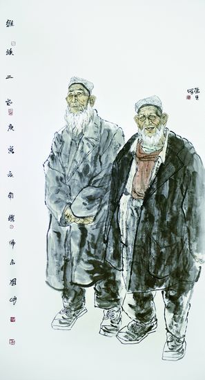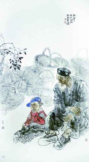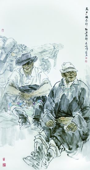 我们看到的周荣生的写意人物既立足于传统、重视笔墨,又有自我的选择与继承,有变化,有思考。在理想追求中所感受那种可贵之至,足见其作为画家的大将风范。周荣生的艺术也具有两极的思考指向,一为传统,一为现代;一为入世,一为出世;一为沉雄博大,一为放逸简略,两者往往正是相反,他没有走向极端,而是仍以东方式的中和态度来悠游期间。有哲人谈及书法贵在有“三气”,即大气、灵气、书卷气。若以此观周荣生的画,三气俱在,在笔精墨妙中见其精神。我们有理由相信,周荣生的艺术会走向更高的境界。