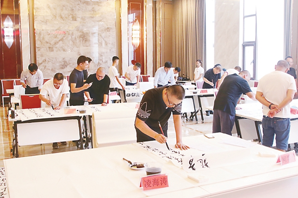 8月16日,黄洪涛、余昌梅、刘晓辉、孙裕国、徐国雄等全体书画家在室内进行集中创作,以各自笔墨丹青绘出武都的多彩画卷,这次创作作品中将会有部分作品参加十月在陇南市博物馆举办的“情系武都——美术、书法作品展览”,并在展览结束后无偿捐赠给武都区人民政府。